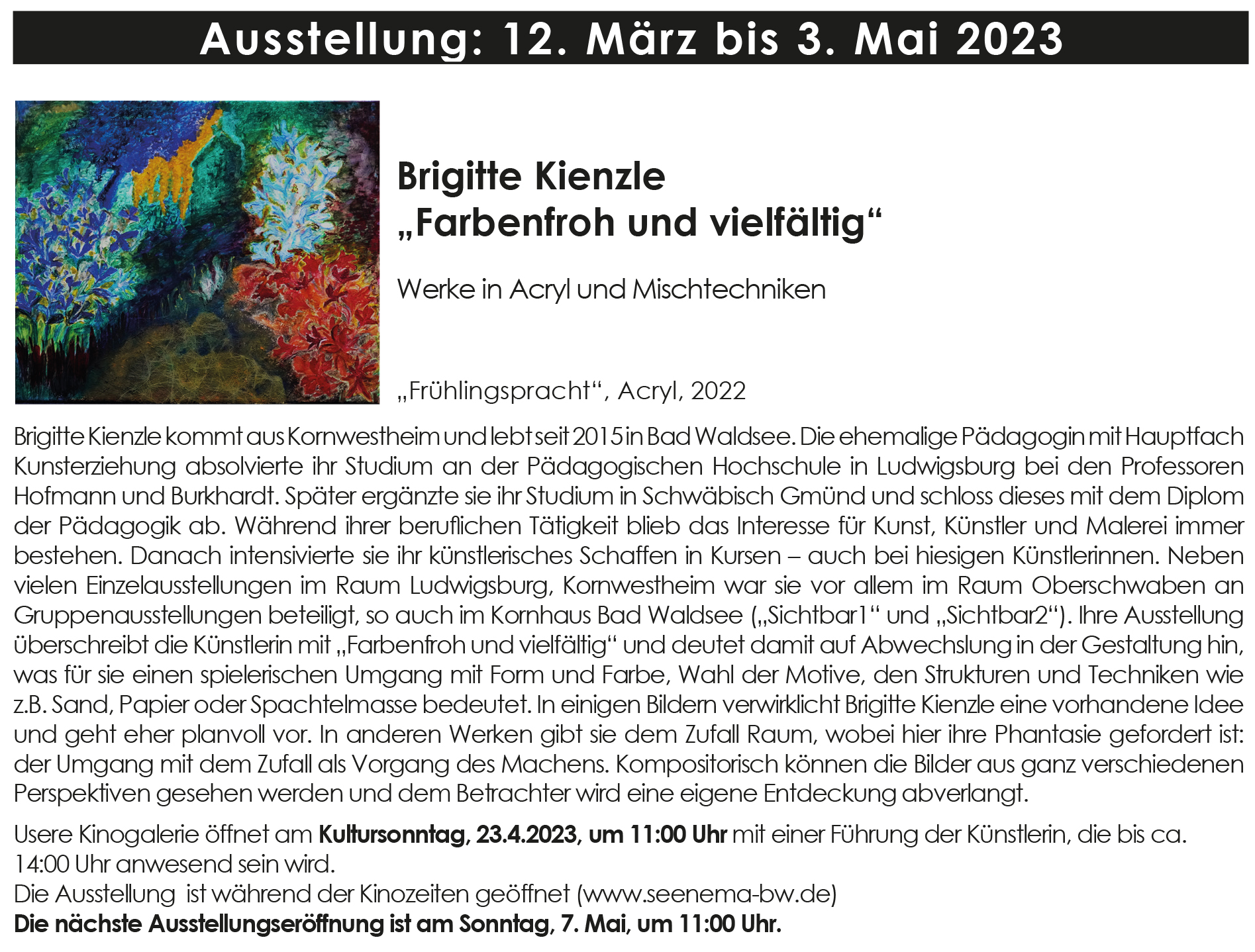 Sonntag, 12. März 2023 - Mittwoch, 3. Mai 2023