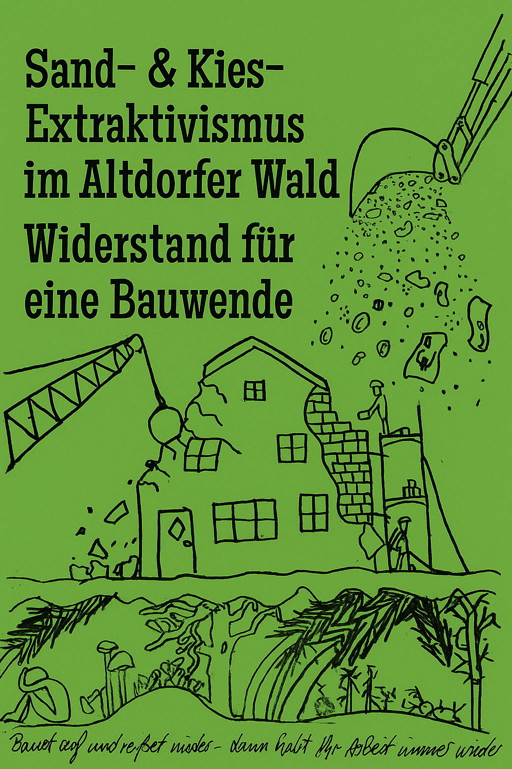 Roland Roth von der Wetterwarte Süd erklärt in einem kurzen Vortrag den Klimawandel anschaulich und mit Unterhaltungswert. Anschließend können Sie im gemütlichen Kinosaal mit einem Ausschnitt aus dem Film „Menschen, die auf Bäume steigen“ in die Welt der Waldbewohner*innen im Altdorfer Wald eintauchen. Samuel Bosch stellt im Anschluss sein neues Büchle „Kies und Sand – Extraktivismus im Altdorfer Wald – Widerstand für eine Bauwende“ vor. Im Nachgang sind alle zu einem Austausch über Klima, Kiesabbau und Bauen eingeladen.